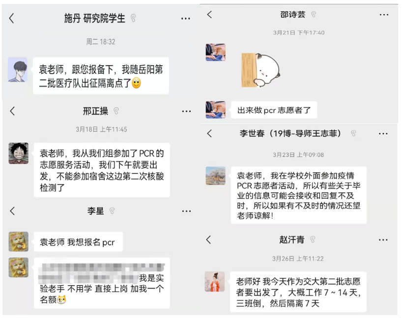 博士生邢正操、邵诗芸、赵汗青,甚至博士毕业班同学李世春、李星,都积极响应号召报名,想为集体、为上海尽自己的一份力。在职博士生施丹更跟随岳阳中西医结合医院医疗队在抗疫前线--医疗隔离点冲锋。
