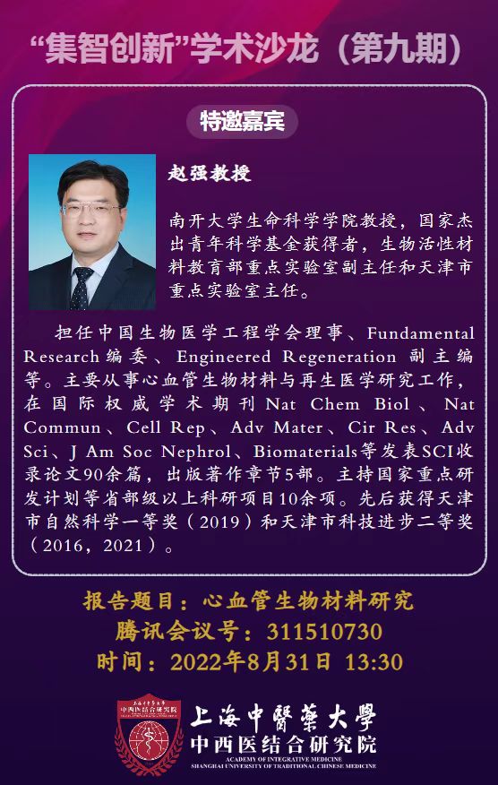 中西医结合研究院第九期“集智创新”学术沙龙预告
