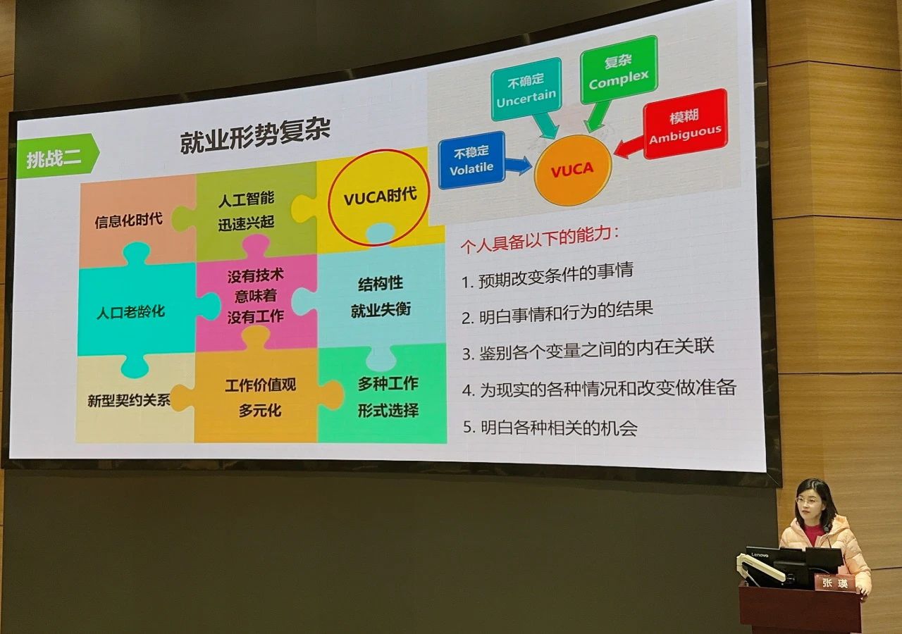 讲座伊始,张瑛老师以娓娓道来的方式,分析拉斯维加斯app 往届毕业生的职业发展方向,提出生涯规划首先要认清形势,她指出,当前就业市场存在毕业生人数总量大、就业形势复杂、结构性矛盾突出这三大挑战。