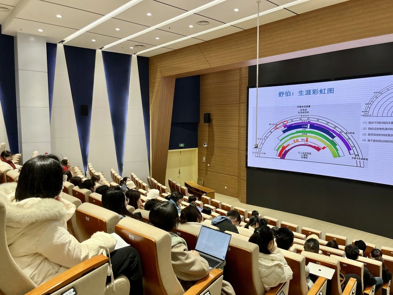 与同学们的互动过程中,张老师探讨了如何认识自己这一话题,并介绍了自我认知模型及多种职业兴趣测试。随后,通过抛出六个问题,涵盖了从个人定位到行业趋势,从短期目标到长期愿景的广泛领域,促使同学们对求职过程中的机遇与挑战有了更为深刻和全面的思考。