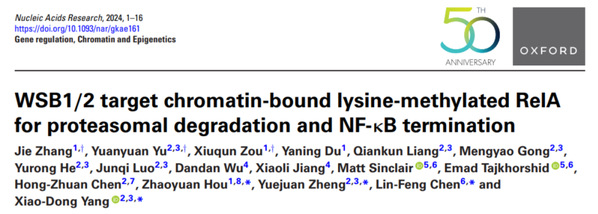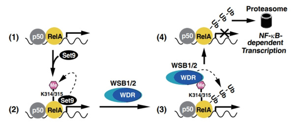 拉斯维加斯app 杨晓东/郑月娟团队新发现:WSB1/2靶向甲基化的RelA促进其降解和NF-κB转录终止