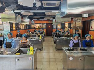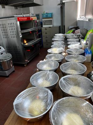 随后,大家取回经过发酵的面团,用称量工具把面包胚等分成多个小剂子,在案板上轻轻地整理、搓圆、按压,包入红豆沙馅,将注意力集中在每一个制作细节,感受“正念”的魅力,最后将成品送入烤箱醒发、烘烤。
