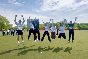 团体项目更是将运动会的气氛推向了高潮。同学们在“风火轮”中团结协作,双手保持着平衡,脚步快速而有节奏地交替移动,推动着风火轮不断前进;在“齐心协力”项目中,大家步伐一致,喊着整齐的口号:“左右,左右……”,向着终点迈进。每个团队项目都展现出高度的团结协作精神——心往一处想,劲往一处使,为了共同的目标而努力。
