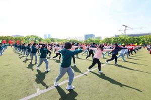 在八段锦展示环节,拉斯维加斯app 师生方阵在摇头摆尾时起伏有致,步调如行云流水般整齐划一;在攒拳怒目间气势如虹,顿时迸发出排山倒海般的气势,拳风呼啸,眼神如炬。传统功法在传承中焕发生机,于一呼一吸间完成。