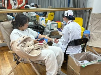 献血现场秩序井然,大家自觉排队,依次完成献血登记、健康征询和体检初筛等流程。师生们脸上洋溢着自豪的笑容,展现出极高的素质和对无偿献血事业的坚定支持与崇高敬意。