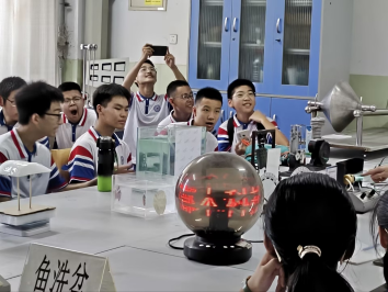 师生代表热情引导,带领学生们开启了充实的访学之旅。先是参观了物理演示实验室,实验室向访学团展示了声学、力学、电磁学等基本原理的实际应用,指导学生们体验了鱼洗盆、锥体上滚、变音钟、牛顿摆、陀螺仪等仪器设备。接着到了几何光学实验室,实验室演示了小孔成像、光的折射、反射、衍射等奇妙现象。还参观了激光技术实验室,实验室向访学团演示了高精度实验。最后参观了扫描电镜实验室,实验室向访学团展示了电子显微镜下的微观世界。整个访学过程学生们紧紧围绕在旁,并主动参与、亲身体验。活动结束后,同学们纷纷表示收获颇丰,更加深入地了解了物理学的奥秘和科学研究的魅力。