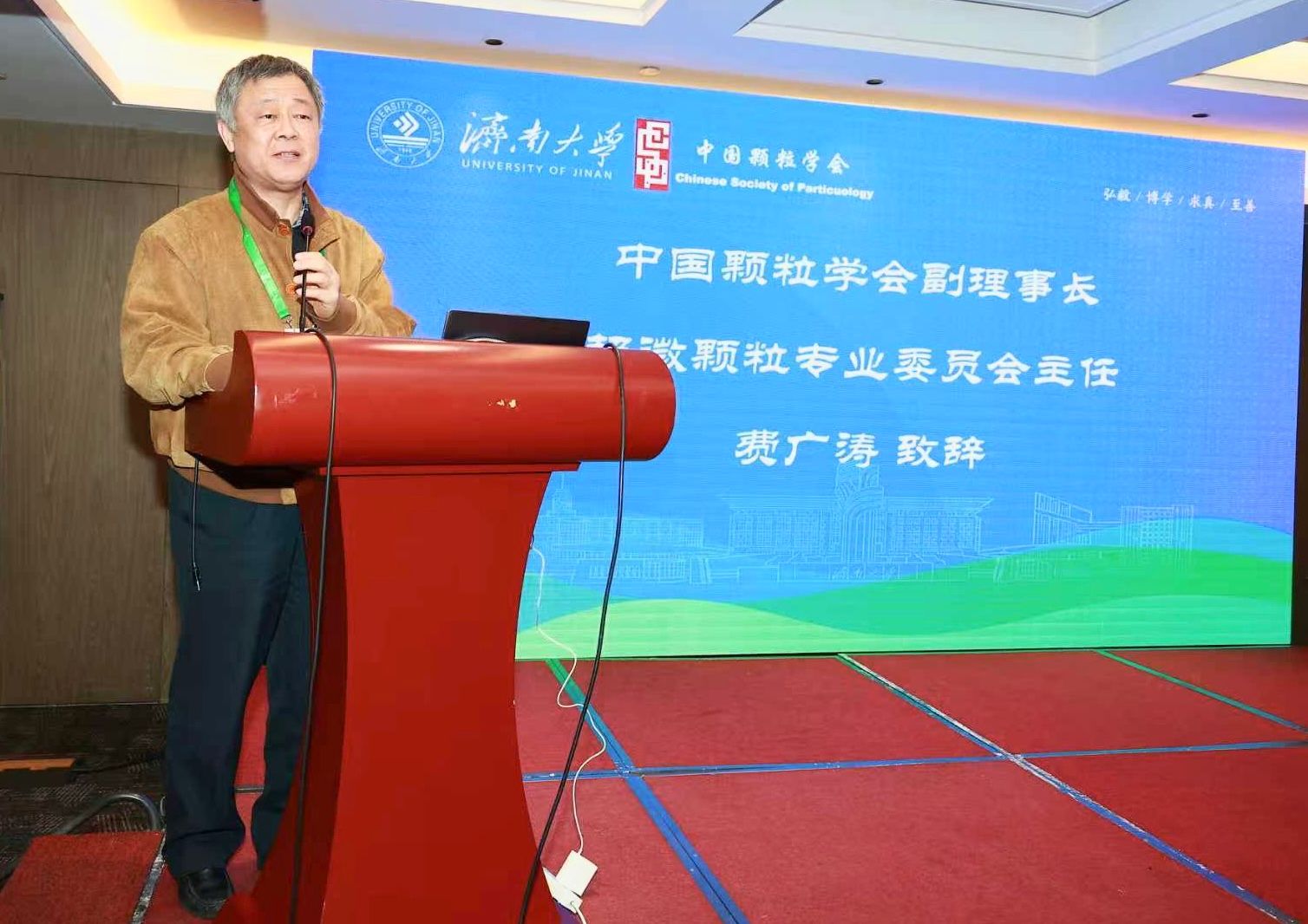 费广涛代表中国颗粒学会致辞。他表示,超微颗粒技术正处于快速发展与深度应用的关键时期,希望与会学者充分依托这一平台,深入交流、加强合作,共同应对新材料、新能源等领域面临的挑战,推动技术再攀新高。
