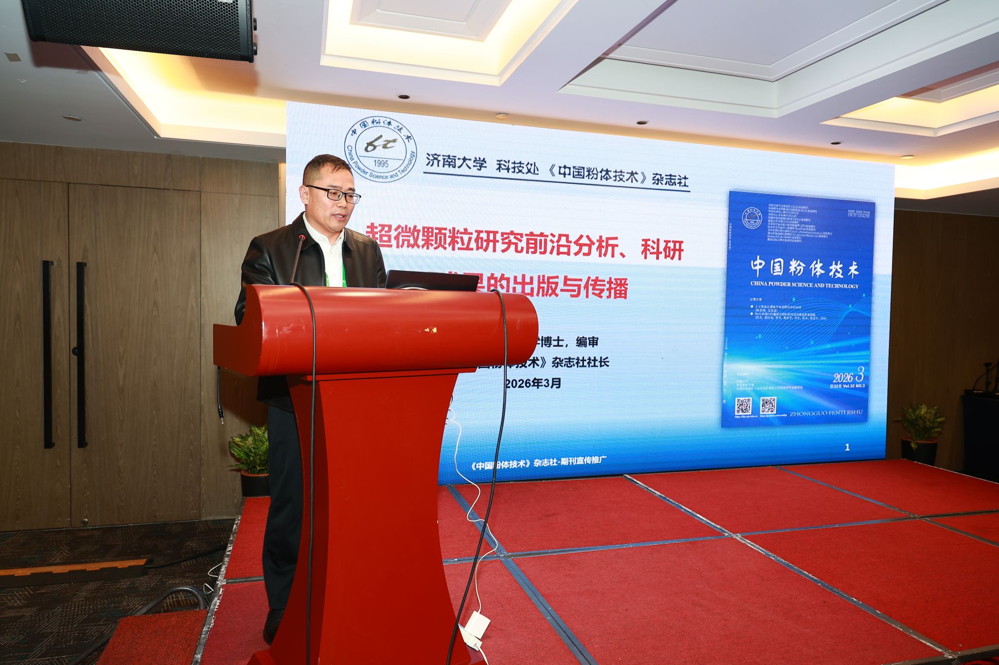 大会特邀四位领域专家作主旨报告。国家杰出青年基金获得者、山东大学尹龙卫教授聚焦锂-空气电池过电位与副反应机理,详解多级孔结构、单原子催化、异质结界面调控等关键技术。西北工业大学李致朋教授以《固体氧化物燃料电池:从微观材料研究到宏观系统制造》为主题,解析SOFC材料设计、规模化制备与产业化瓶颈,提出从实验室到工业生产的技术路径。国家杰出青年基金获得者、北京化工大学陈仕谋教授围绕高比能、高安全锂离子电池关键材料研发及器件集成,聚焦高电压电解液、硅碳负极、界面调控等核心方向,分享相关技术突破与工程化成果。《中国粉体技术》杂志社吴敬涛社长系统梳理了超微领域研究前沿与热点方向,介绍期刊平台建设与成果传播体系。