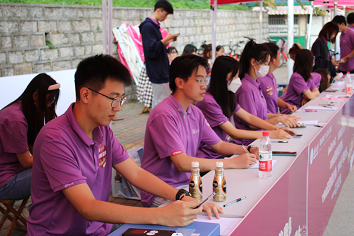 迎新报到现场,咨询新生入学手续办理进展情况,针对学生所关心的内容进行了交流。