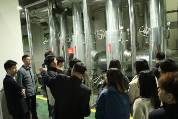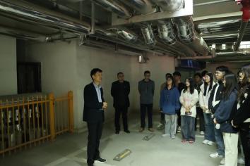 师生前往方亚新能源公司运维管理的华夏帝苑小区地源热泵机房进行了参观学习,方亚新能源副总经理韩乃峰、新能源教工党支部教师赵强分别进行现场教学讲解。