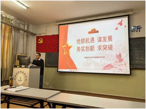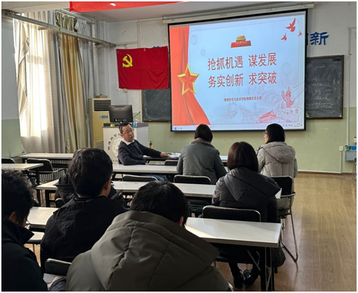院长徐锡金同志为物理系全体教工讲授题为“抢抓机遇谋发展,务实创新求突破”的专题党课。