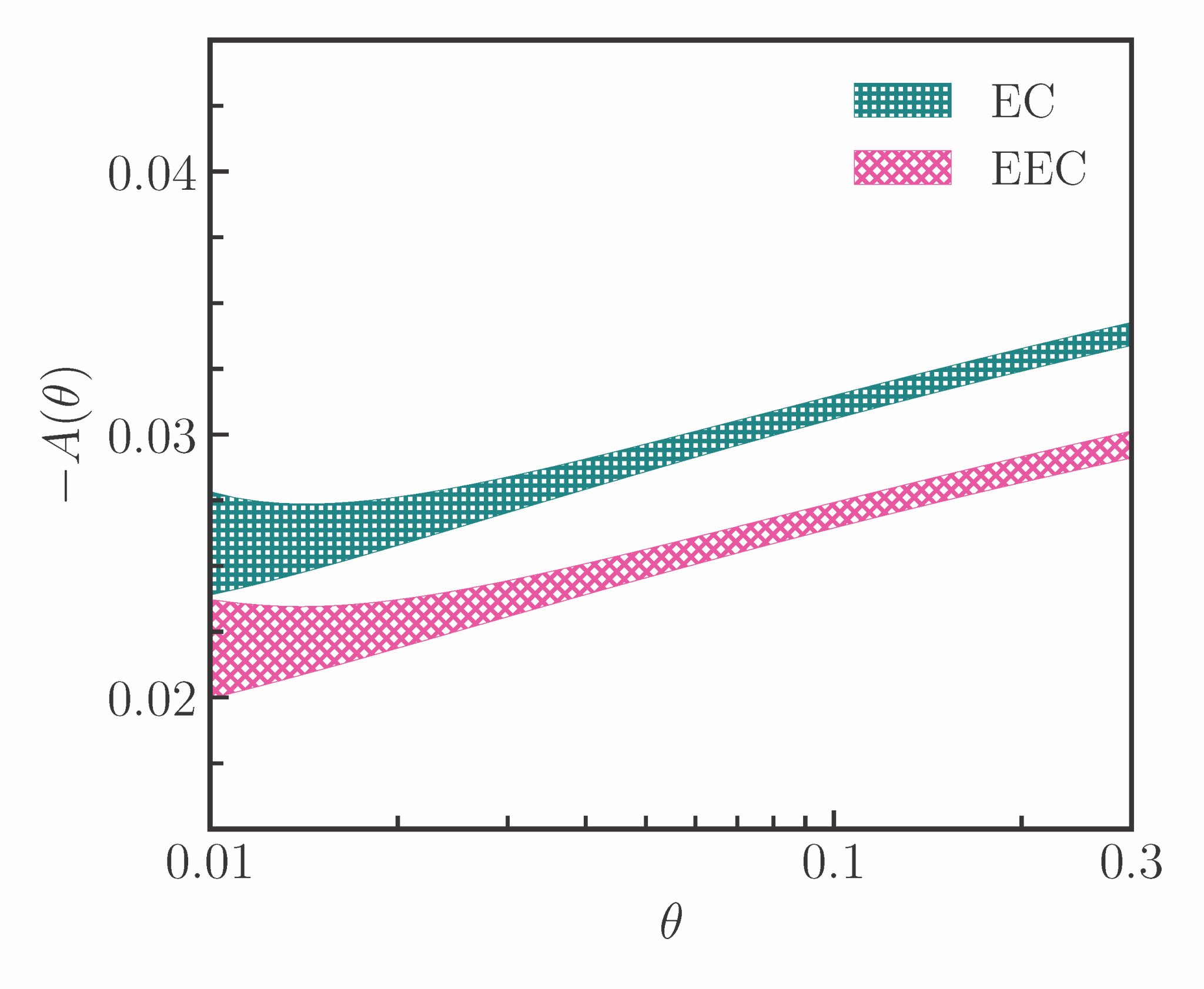 为解决这些挑战,研究团队提出了基于EEC的cos2φ方位角不对称来探测胶子线性极化的新方法,其能量加权有效避免末态软胶子辐射的干扰,为胶子极化测量提供了一条理论上更可靠、实验上更易于实现的途径。为了获得更高的理论精度,研究团队在CCFM框架下,自洽融合了量子相干效应造成的级联劈裂中的角度排序行为。通过考虑量子相干效应,并引入非微扰参数Λ,该理论框架自然捕捉到了EEC在小角度区域的平台(plateau)行为,成功为微扰区向非微扰区的平滑过渡提供了一个统一框架。