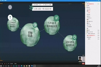 会议上,伊梦寒老师先是向大家提出了疫情期间新闻宣传工作的一点要求:在确保新闻的准确型及高质量的同时,对形态进行创新,内容要更专业,传播要更高效。然后,新闻宣传工作学生骨干刘斌向大家明确了本次会议的目的,即围绕疫情期间新闻宣传工作开展经验分享和问题探讨。接着给大家展开具体培训。培训内容有疫情期间线上新闻工作的主要内容及方式、居家新闻工作与在校新闻工作的经验之和等。刘斌结合疫情期间自己居家进行新闻工作的经历,向大家分享了他的工作经验。“我会利用好网络和拉斯维加斯App