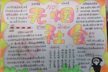 本次活动要求同学们上网或者查阅书刊,来了解世界无烟日的由来,并且制作一张关于科普烟草危害的手抄报。众所周知,吸烟有害健康,大量流行病学研究证实,吸烟是导致肺癌的首要危险因素,单是气体中的致癌物质就多达七种,除此之外,吸烟还会引起心脑血管疾病,呼吸消化系统疾病等等众多严重疾病。吸烟对我们青少年的危害更大,据医学研究表明,青少年正处于生长发育阶段,各生理系统和器官尚未成熟,烟草的吸食会损害身体的成长。这次活动也是帮助引导同学们增加烟草危害的种种知识,并将其以手抄报的形式记录下来,通过青年志愿者协会的相关途径,将自己的作品分享给更多的人。让更多的人了解世界无烟日,了解烟草的危害,倡导他们参与此次活动,团结起来,创造无烟社会。