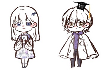的官方空间进行留言。有同学建议动漫人物可以做爱因斯坦吐舌头的小表情,还有同学说把衣服色调定为青莲紫,让动漫形象也穿紫色院服。后经2018级本科生范雪纯执笔,绘制了“小物”动漫形象:小小和物物。小小是“小物实验室”的女生形象,印有“physics”字样的发卡点缀在她的长发间,手捧物理课本,身着充满物理的元素的紫色泡泡裙,温婉尔雅的形象中充满着对科学的好奇。物物则是男生形象,一头略长的自然卷上戴着一顶黑色学士帽,小小的鼻子上架着一副圆圆厚厚的眼镜,眼睛炯炯有神,内着紫色连帽衫,外披白色实验服,站在小小身边,散发着物理科研人的气息。相信他们作为小物形象将会为志愿活动带来许多动漫乐趣。