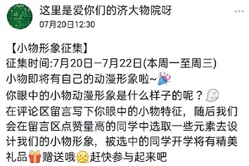 向全院学生发起“小物实验室”动漫形象征集活动。