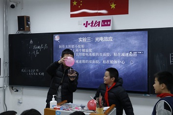 志愿者们在利用自身专业知识的同时,又运用了诙谐幽默的语言,让小学生们能更好的理解课程的内容。除此之外,志愿者们还让小学生们立身实践,指导他们进行实验,这不仅加强了学生们与志愿者之间的互动,带动了学生们的课堂积极性,还让学生们更深刻的理解了何为“电荷的魔力”。
