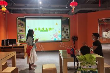 的志愿者在赵梓研同学的带领下来到山东省科技馆开展活动。在活动中,志愿者从身边普通的现象如铁质回形针能身轻如燕漂浮在水面上;大自然中有许多小昆虫能停留在水面上爬行,却不会沉到水底;吹的泡泡是球形的等现象入手。提出“这些日常现象是什么原理?”的问题,从而引出本次实验主题“水的表面张力”。活动中,志愿者带领参与者进行有趣的实验,在一杯装满水的玻璃杯中放入硬币,随着硬币一枚枚的放入杯中,水面不断的凸出,但水并没有流出来。志愿者又单独拿一个硬币,往硬币上面滴水,随着水滴不断的滴下,硬币上面的水也不断的往上凸出,最终形成一个凸起的水面。随后志愿者从分子间作用力的角度上向参与者解释这种现象产生的原因。有趣的小实验结合志愿者们深入浅出的解释,极大的满足了参与者的求知欲,让参与者得以在轻松的氛围中学习到有关水的表面张力知识。