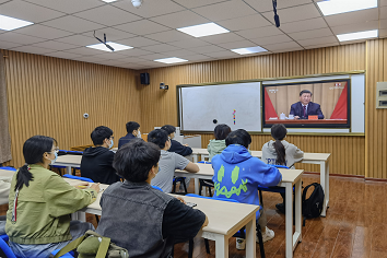 党委副书记章岚,各年级辅导员以及学生代表在会议室集中收看直播。