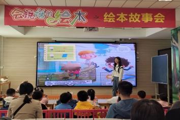 活动开始前,在志愿者们的带领下小朋友与其家长一起跳了亲子舞,活跃现场氛围。活动开始进行,志愿者们根据小朋友好奇、喜欢探索的心理,结合开发阅读兴趣的需求选择绘本,以游戏、趣味活动等方式帮助孩子了解自然科普、自我认知、行为习惯培养等方面的内容。一位志愿者讲了《小老鼠大鲸鱼》,一个关于友情的故事,充满魔力又发人深思。两位主人公一个庞然大物,一个微乎其微。他们在一起时,互帮互助,彼此欣赏,尽管知道可能永远不会再见面,但也知道永远不会忘记彼此。深厚而单纯的感情,可以让孩子们理解到,真正的爱可以超越时间和空间。志愿者们用生动有趣的语言和肢体动作,声情并茂地把绘本故事活灵活现地展现给大家,每一位孩子和家长都身临其境。